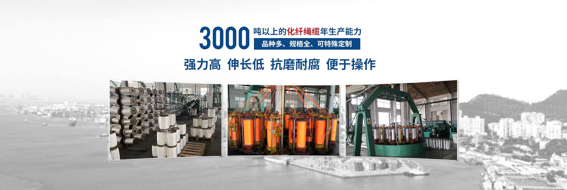 揚州神龍繩業(yè)有限公司,位于江蘇中部古城揚州北首,古運河畔,中國“荷藕之鄉(xiāng)”-寶應(yīng)城西工業(yè)集中區(qū),該園區(qū)是省市中小企業(yè)創(chuàng)業(yè)示范基地、揚州市優(yōu)化發(fā)展園區(qū)。揚州神龍繩業(yè)有限公司是一現(xiàn)代化新型化纖繩纜的生產(chǎn)企業(yè)。交通便捷,京杭大運河和京滬高速穿境而過,環(huán)境生態(tài)優(yōu)美。截止2022年12月底,公司實際擁有固定資產(chǎn)5200多萬元,占地建筑面積20000多平方米,標準廠房四棟及水電辦公設(shè)施齊全,機構(gòu)設(shè)置:經(jīng)理辦、技術(shù)質(zhì)量部、生產(chǎn)部、銷售部、綜合部。公司聘用10名繩纜行業(yè)高級技術(shù)人員,技術(shù)力量雄厚。擁有國內(nèi)高速三股機,六股機、八股、十二股、雙層編織制繩設(shè)備和拉絲設(shè)備。計量、理化、檢測手段齊全。企業(yè)已獲得GB/T19001-2016/ISO19001:2015質(zhì)量體系認證證書及中國船級社(CCS)、法國船級社(BV)、挪威德國船級社(DNV.GL)、日本(NK)工廠認可證書。于2016年12月取得了解放軍裝備承制單位注冊證書,獲得了高新技術(shù)產(chǎn)品的認定證書、江蘇省民營科技企業(yè)稱號,并獲得了實用型專利,“高強度無捻絲滌綸樹脂插編復合繩”,專利號“ZL 2017 2 0221636.8”和多股牽引繩纜、高強度無捻絲海洋勘探耐磨腐防蝕止合成纖牽引繩高新技術(shù)產(chǎn)品認定證書。為祖國的邊防和航運業(yè)貢獻一點力量。按國際標準生產(chǎn)“繩龍”牌化纖繩纜,品種多、規(guī)格全、年生產(chǎn)能力達3000噸以上。主要生產(chǎn)錦綸(聚酰銨)、丙綸(聚丙烯)、滌綸(聚酯),超高分子聚乙烯等系列產(chǎn)品,結(jié)構(gòu)有;三股、四股、六股、八股、十二股、雙層編織繩索。規(guī)格從Ф4mm~Ф120mm系列產(chǎn)品任你選擇。可根據(jù)客戶需要生產(chǎn)特殊用途規(guī)格繩索。具有強力高,伸長低、抗磨耐腐,便于操作。產(chǎn)品性能指標均符合相關(guān)的國際標準和國家標準要求,廣泛應(yīng)用于遠洋運輸、船舶制造、漁業(yè)捕撈、港口作業(yè),國防軍工、石油勘探等領(lǐng)域,取得市場廣泛認可和市場占有率。近年來本公司奉行“以質(zhì)為本,誠信經(jīng)營,優(yōu)良服務(wù),顧客滿意”的宗旨,竭誠為廣大用戶提供優(yōu)良產(chǎn)品和服務(wù)。推動質(zhì)量管理的深入開展,加強員工的質(zhì)量意識,進一步提高產(chǎn)品質(zhì)量,滿足市場和用戶的需求,為用戶服務(wù)。